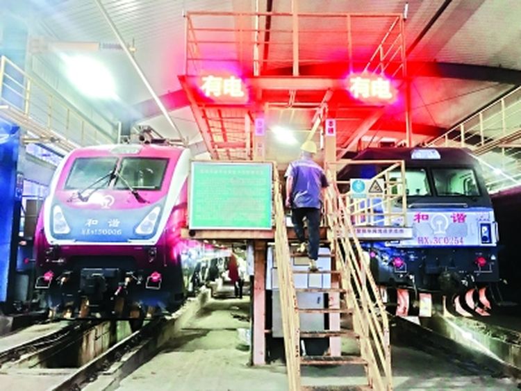 車頭每來回牽引完一趟列車,需回到檢修庫進(jìn)行全身“體檢”。檢修團(tuán)隊(duì)隨之登場,每臺車頭的檢修時(shí)間不能超過70分鐘,檢修完后,車頭就進(jìn)入待命狀態(tài),按照計(jì)劃執(zhí)行新的牽引任務(wù)。