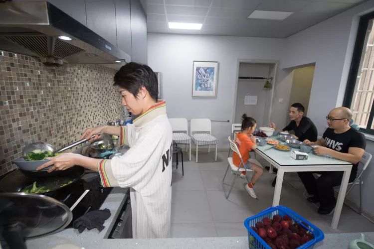 張海林“一家四口”準(zhǔn)備吃晚飯。