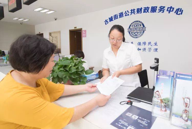 鹿城社區(qū)的書記方華芬(左)在古城街道便民服務(wù)中心為吳元渺申請一筆社會救助。
