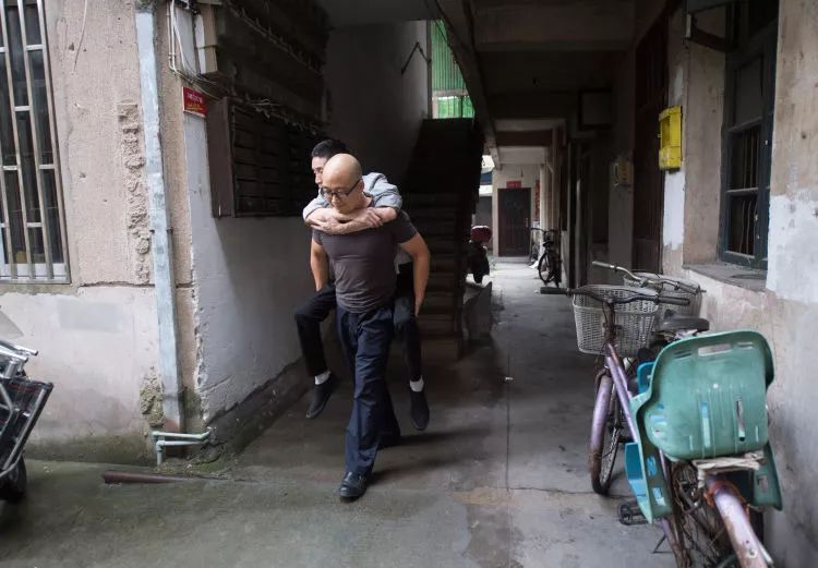張海林背著吳元渺去參加愛心服務(wù)隊(duì)的公益活動。