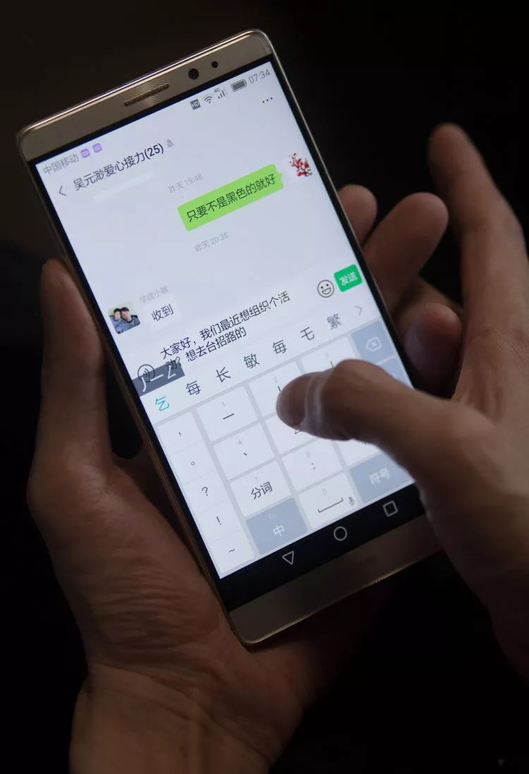吳元渺在家中給愛心服務(wù)隊(duì)的志愿者們發(fā)信息,組織一場新的公益活動。