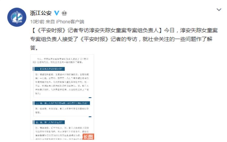 今日,淳安失蹤女童案專案組負(fù)責(zé)人接受了《平安時(shí)報(bào)》記者的專訪,就社會關(guān)注的一些問題作了解答。