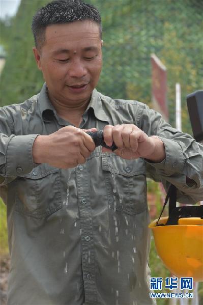 “開始覺得身體有點軟,快半個小時的時候,就有點脫水的感覺,有點頭昏,全身無力。但意識是清醒的?!钡谝淮芜M(jìn)行高空帶電作業(yè)的龍雙全身體斜著靠在一棵大樹上休息,腳仍然不住地顫抖,開口說話臉都在抖動。