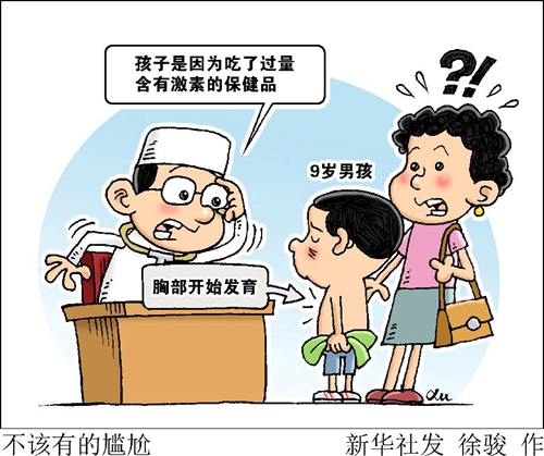 9歲的成都男孩浩浩,遇到了這個年齡和性別不該有的尷尬,他的胸部竟然開始發(fā)育了。經(jīng)醫(yī)生診斷,孩子是因為吃了過量含有激素的保健品。類似浩浩這樣因為服用保健品帶來身體損傷的例子并不少見。