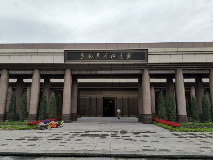 香山腳下,新落成的香山革命紀念館莊重大氣,“四梁八柱”的雨棚造型寓意黨中央在此為新中國搭建四梁八柱。