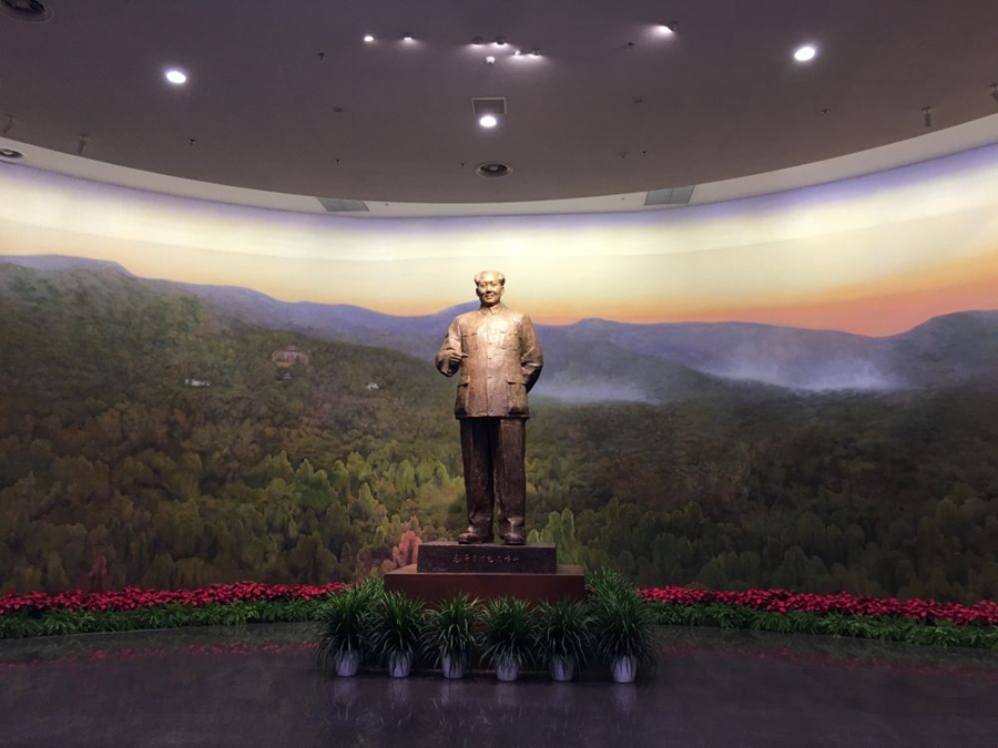 展覽序廳,矗立著高達3.8米的毛澤東主席雕塑,兩側(cè)的大型浮雕,刻畫了1949年的兩大標志性歷史事件: