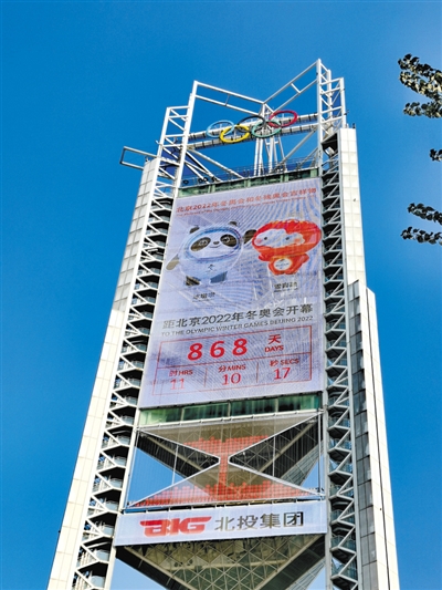 北京冬奧會(huì)倒計(jì)時(shí)裝置是近1000平方米的LED顯示屏,搭設(shè)在奧林匹克公園中心區(qū)核心位置的玲瓏塔上。