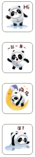 熊貓形象與富有超能量的冰晶外殼相結(jié)合,冬奧會(huì)吉祥物冰墩墩體現(xiàn)的是冬季冰雪運(yùn)動(dòng)和現(xiàn)代科技的特點(diǎn)。從“打招呼”、“一起舞”、“溜了”等微信動(dòng)畫(huà)表情中可以感受到冰墩墩敦厚、活潑的形象特點(diǎn),而夜空中飛翔的動(dòng)畫(huà)表情則展現(xiàn)了冰墩墩的十足科技感。