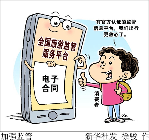 “我剛給全家人從旅行社訂了跟團(tuán)游,就收到了提醒簽約旅游電子合同的短信。有官方認(rèn)證的監(jiān)管信息平臺,我們出行更放心了。”上海市民方赟梅說,家人和朋友對納入“全國旅游監(jiān)管服務(wù)平臺”的電子合同頻頻點(diǎn)贊。