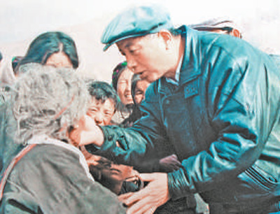 在西藏工作,孔繁森深深愛上了這片壯麗、神奇的高原,還有這里的人民。1988年,山東再次選派進藏干部,孔繁森第二次赴藏工作。進藏后,孔繁森擔任拉薩市副市長,分管文教、衛(wèi)生和民政工作。到任僅4個月,他就跑遍了全市8個縣區(qū)所有的公辦學校和一半以上的村辦小學,為發(fā)展少數(shù)民族的教育事業(yè)奔波操勞;為結束尼木縣續(xù)邁鄉(xiāng)等3個鄉(xiāng)群眾易患大骨節(jié)病的歷史,他多次爬到海拔近5000米的山頂水源處采集水樣,幫群眾解決飲水問題;在了解農(nóng)牧區(qū)缺醫(yī)少藥的情況后,他每次下鄉(xiāng)時都特地帶一個醫(yī)療箱,工作之余就給農(nóng)牧民群眾認真地聽診、把脈、打針……