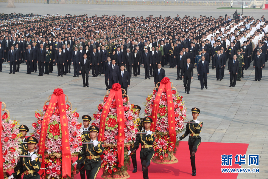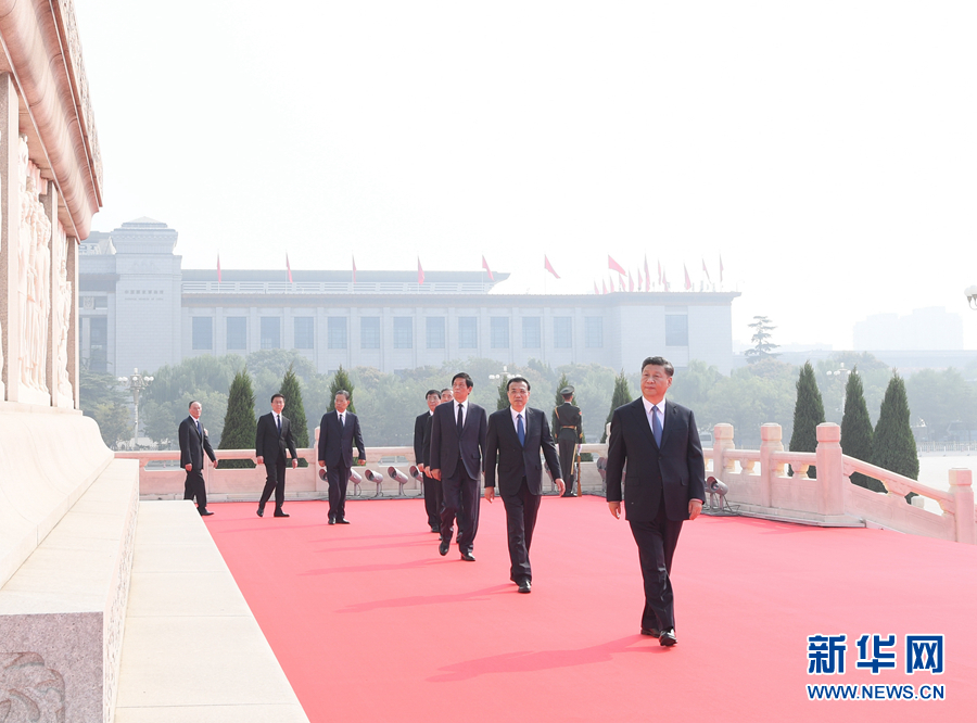 9月30日上午,習(xí)近平、李克強(qiáng)、栗戰(zhàn)書、汪洋、王滬寧、趙樂(lè)際、韓正、王岐山等黨和國(guó)家領(lǐng)導(dǎo)人來(lái)到北京天安門廣場(chǎng),出席烈士紀(jì)念日向人民英雄敬獻(xiàn)花籃儀式。儀式前,習(xí)近平等來(lái)到毛主席紀(jì)念堂瞻仰毛澤東同志遺容。新華社記者 鞠鵬 攝