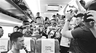 軍樂(lè)團(tuán)高鐵上即興演奏