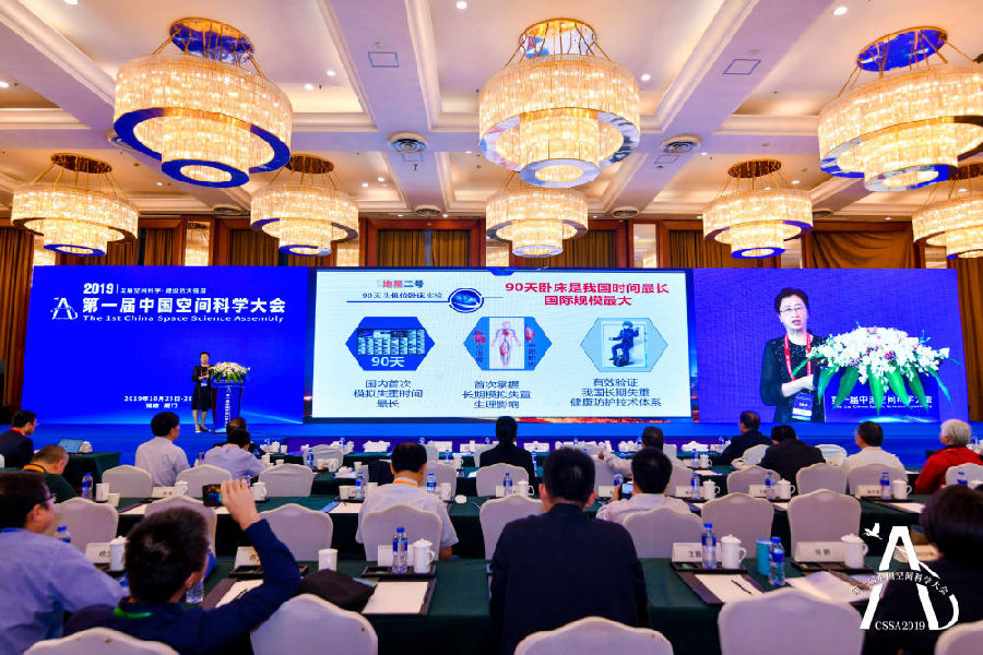 在近日于廈門舉行的第一屆中國(guó)空間科學(xué)大會(huì)上,中國(guó)載人航天工程航天員系統(tǒng)副總設(shè)計(jì)師李瑩輝介紹模擬失重實(shí)驗(yàn)。中國(guó)空間科學(xué)學(xué)會(huì)供圖