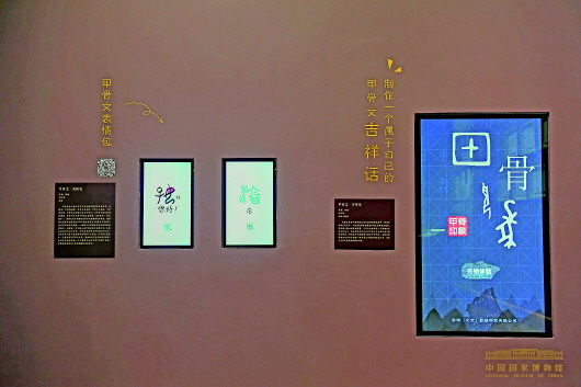 國博的甲骨文文化展雖沒有這么跌宕起伏的故事做注解,但融入信息時(shí)代特色的展示手段同樣為“科普”增色。趙永說:“觀眾有興趣來看很重要,但一般的甲骨都很小、很脆,觀賞性并不強(qiáng)。再就是看不懂文字,這個(gè)不是看看展板就能理解透的。所以做了一些多媒體的東西,包括甲骨文表情包、手繪甲骨文吉利話、全息甲骨文宇宙等?!?/p>