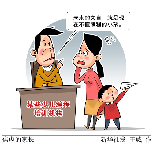 “未來的文盲,就是現(xiàn)在不懂編程的小孩”“不會寫代碼就喪失了網(wǎng)絡(luò)生存能力”……近來,大量引發(fā)家長焦慮感的少兒編程廣告,充斥于自媒體和公共場所?!靶氯A視點”記者調(diào)查發(fā)現(xiàn),繼奧數(shù)、英語之后,少兒編程成為最新教育培訓熱點。少兒編程如此火爆,誰是幕后推手?家長是否應(yīng)該讓孩子學編程?