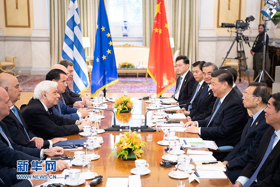 當?shù)貢r間11月11日,國家主席習(xí)近平在雅典同希臘總統(tǒng)帕夫洛普洛斯會談。 新華社記者 李學(xué)仁 攝