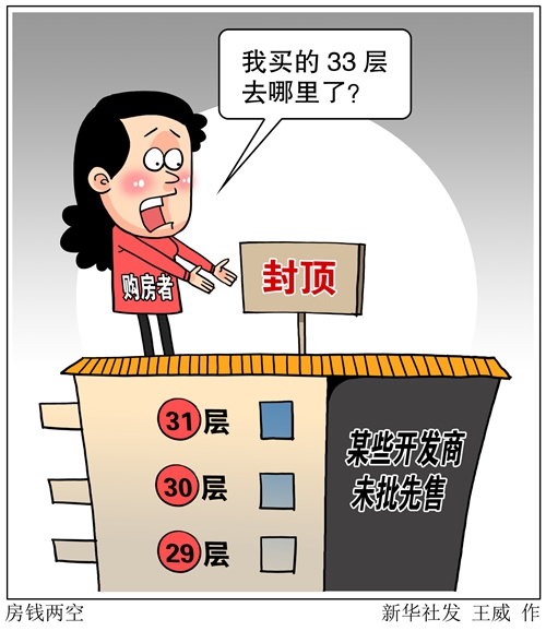 早已過了交房時(shí)間,樓房遲遲未能完工。近期高女士聽說封頂了,趕忙來確認(rèn)?!皼]想到我買的3棟總共只有31層,根本就沒有33層!”她氣憤地說。