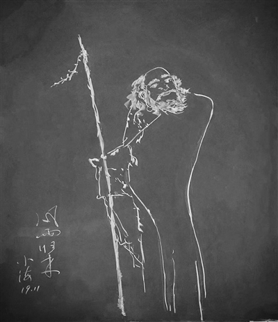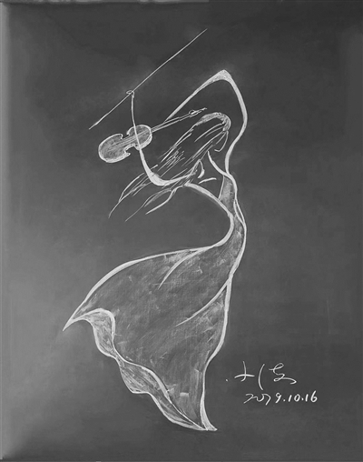 朱中海,揚州高等職業(yè)技術學校基礎教育部主任、數(shù)學教師。今年57歲的他,已教了35年數(shù)學。揚子晚報記者昨日找到朱老師,看到了他去年和今年“創(chuàng)作”的粉筆畫。之所以要用“創(chuàng)作”這個顯得正式的詞語,因為記者眼里的這些粉筆畫,雖寥寥數(shù)筆,卻鮮活靈動,宛如藝術品。沒有一定的功力,僅僅靠一些數(shù)學上的曲線,是無法完成的。