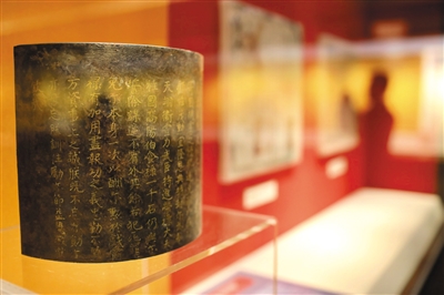 北京市檔案館展出的仿制明代“金書(shū)鐵券”。