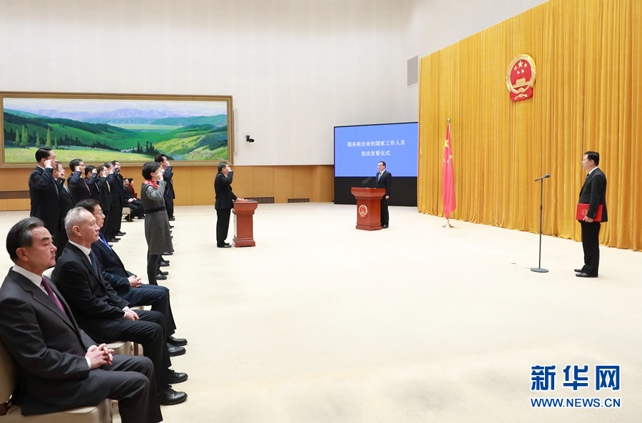 宣誓后,李克強說,忠于憲法、遵守法律是每一名公職人員必須遵循的基本行為準(zhǔn)則,讓人民過上好日子是每一名公職人員必須謹(jǐn)記的奮斗目標(biāo)。他要求大家堅持以習(xí)近平新時代中國特色社會主義思想為指導(dǎo),依法履職,為民履職,實干履職,廉潔履職。帶頭尊法學(xué)法守法用法,積極推進(jìn)改革創(chuàng)新,在攻堅克難中彰顯擔(dān)當(dāng),在狠抓落實中展現(xiàn)作為,嚴(yán)守紀(jì)律規(guī)矩,嚴(yán)格秉公用權(quán),勤儉辦事,厲行節(jié)約,傾情竭力把人民群眾最關(guān)切最期盼的事情辦實辦好,齊心協(xié)力推動經(jīng)濟社會持續(xù)健康發(fā)展。