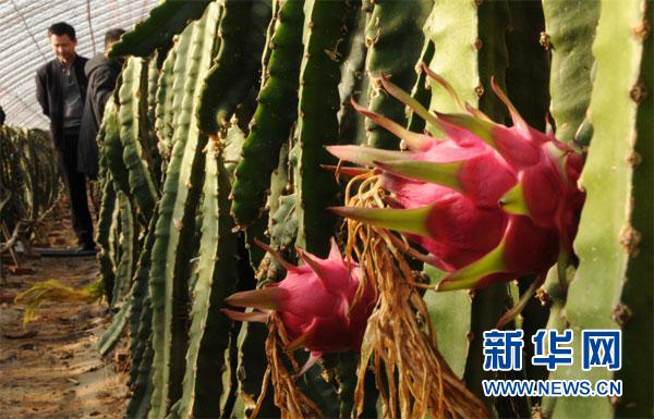 室外-5℃,位于河北省平泉市黃土梁子鎮(zhèn)的中國(guó)北方火龍果產(chǎn)業(yè)示范園大棚內(nèi)卻溫潤(rùn)如春,鮮果飄香。新華網(wǎng) 張朝華攝