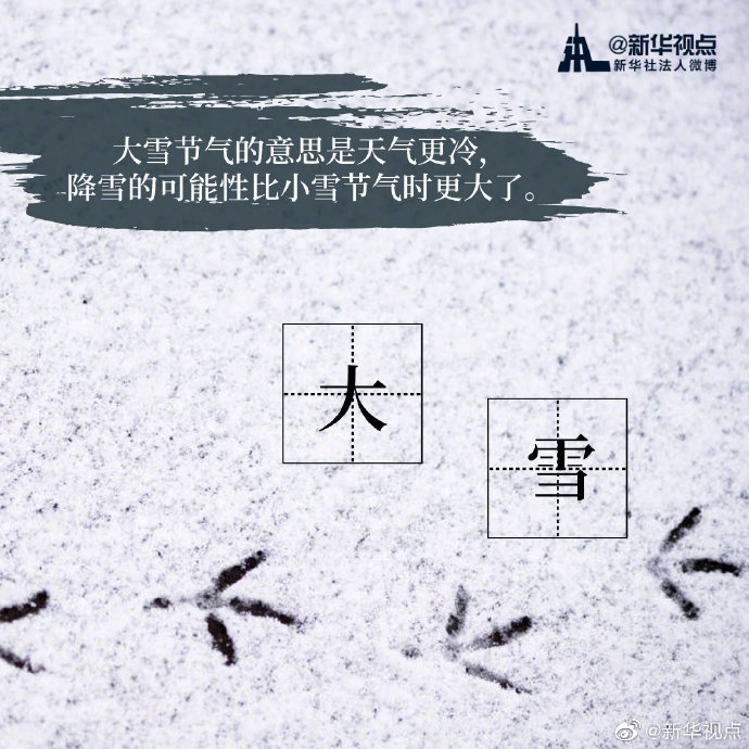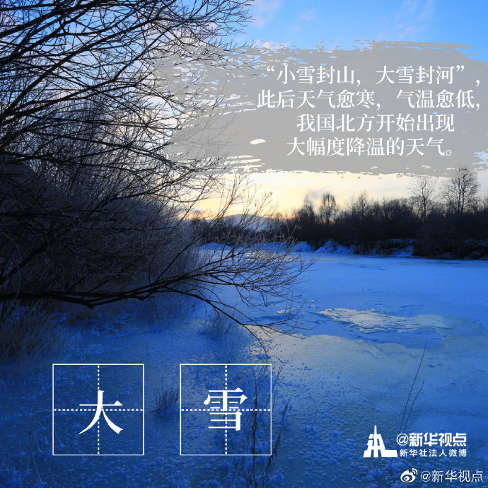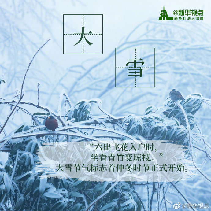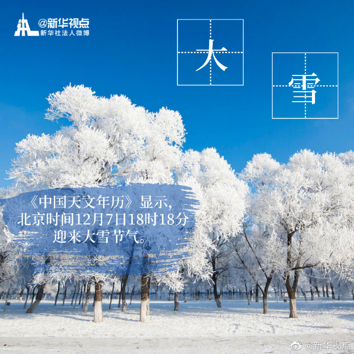 “白雪紛紛何所似?未若柳絮因風(fēng)起。”今天18時18分迎來“大雪”節(jié)氣。相較于“小雪”節(jié)氣,“大雪”節(jié)氣時,氣溫不斷下降,雪量不斷增大,下雪天數(shù)不斷增加。天氣漸冷,注意添衣保暖。?