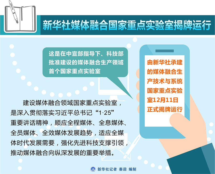 新華社北京12月11日電? 由新華社承建的媒體融合生產(chǎn)技術(shù)與系統(tǒng)國家重點實驗室12月11日正式揭牌運行。這是在中宣部指導(dǎo)下、科技部批準建設(shè)的媒體融合生產(chǎn)領(lǐng)域首個國家重點實驗室。建設(shè)媒體融合領(lǐng)域國家重點實驗室,是深入貫徹落實習(xí)近平總書記“1·25”重要講話精神,順應(yīng)全程媒體、全息媒體、全員媒體、全效媒體發(fā)展趨勢,適應(yīng)全媒體時代發(fā)展需要,強化先進科技支撐引領(lǐng),推動媒體融合向縱深發(fā)展的重要舉措。