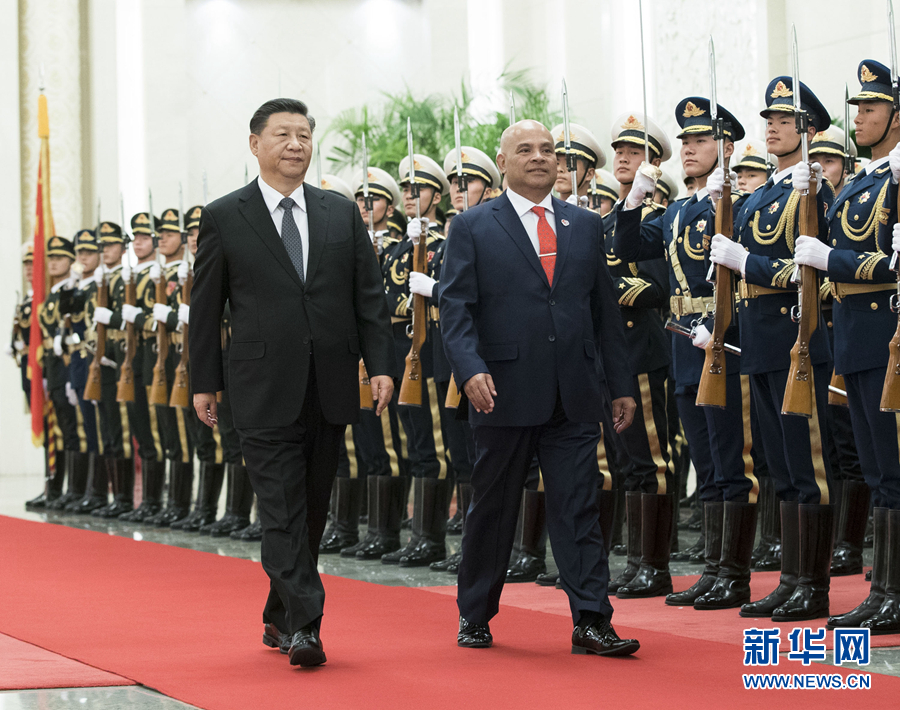 12月13日,國(guó)家主席習(xí)近平在北京人民大會(huì)堂同密克羅尼西亞聯(lián)邦總統(tǒng)帕努埃洛會(huì)談。這是會(huì)談前,習(xí)近平在人民大會(huì)堂北大廳為帕努埃洛舉行歡迎儀式。 新華社記者 申宏 攝