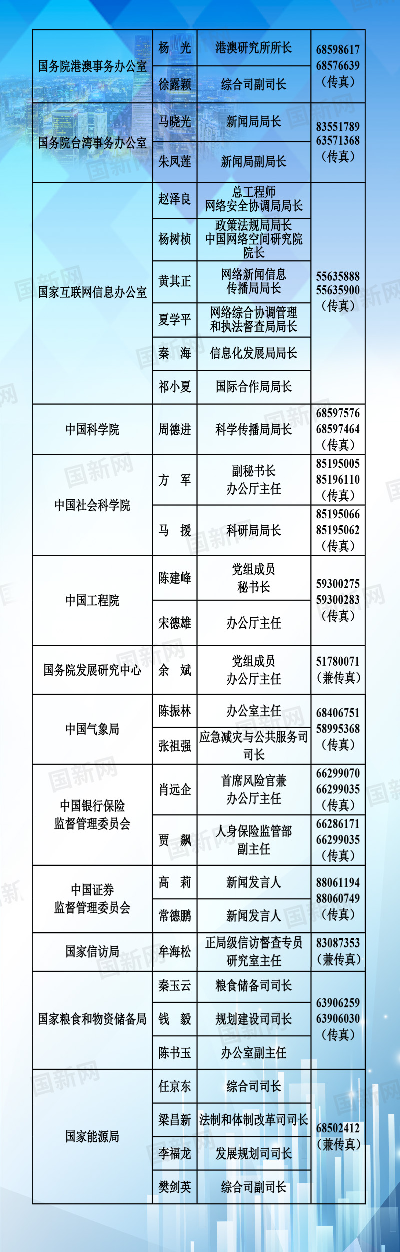 中央國(guó)家機(jī)關(guān)和地方2020年新聞發(fā)言人名錄發(fā)布