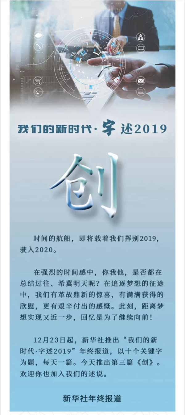 鴻蒙初辟,天地始開。不經一番篳路藍縷,哪來春華秋實?不信你看,創(chuàng)新路上,載人航天再飛天,大興機場始展翅,國產航母初入列……2019一個個“中國創(chuàng)造”,向世人展示大國創(chuàng)新的萬千氣象!