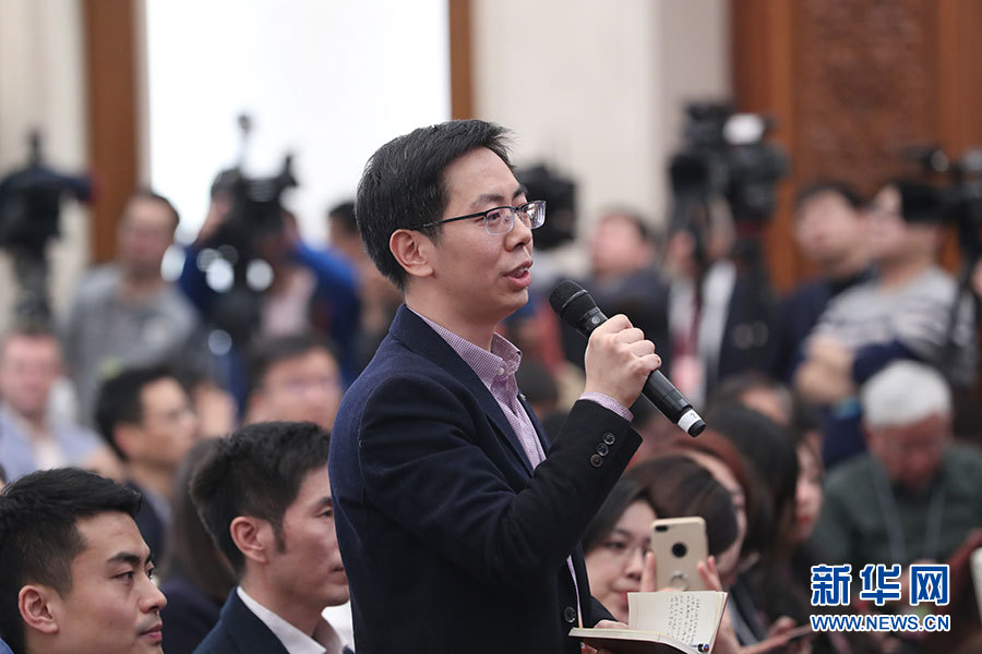 全國(guó)政協(xié)十三屆二次會(huì)議新聞發(fā)布會(huì)于3月2日15:00在人民大會(huì)堂一層新聞發(fā)布廳召開(kāi),大會(huì)新聞發(fā)言人郭衛(wèi)民向中外媒體介紹本次大會(huì)有關(guān)情況并回答記者提問(wèn)。圖為人民日?qǐng)?bào)社記者提問(wèn)。新華網(wǎng)/中國(guó)政府網(wǎng) 翟子赫 攝