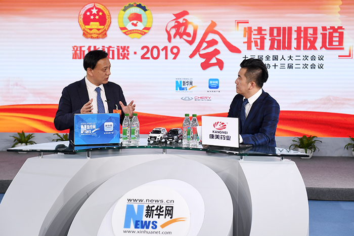 3月3日,全國人大代表、步長制藥總裁趙超做客新華網(wǎng)2019全國兩會特別報道 新華網(wǎng)?李相博攝