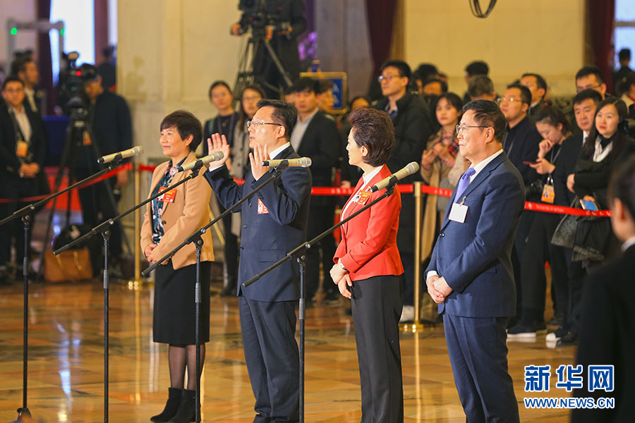 全國政協(xié)十三屆二次會議于3月3日下午3時(shí)在北京人民大會堂開幕。新華網(wǎng)、中國政府網(wǎng)進(jìn)行現(xiàn)場直播。圖為全國政協(xié)委員接受采訪。新華網(wǎng)/中國政府網(wǎng)?劉廈 攝
