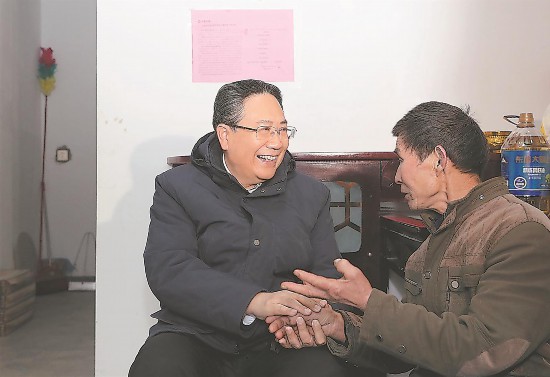 2月2日,安徽省委書記李錦斌深入六安市金寨縣花石鄉(xiāng)大灣村村民陳澤申家中走訪慰問,與他親切交談。記者 徐國康 攝? 來源:安徽日報
