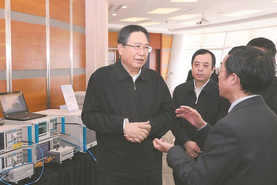 2月20日,安徽省委書記李錦斌來到中建材蚌埠玻璃工業(yè)設計研究院,在展示大廳參觀蚌埠市科技創(chuàng)新代表性企業(yè)產(chǎn)品。記者 徐國康 攝? 來源:安徽日報