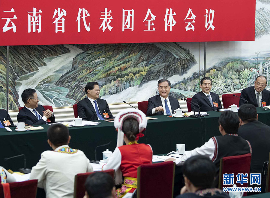 汪洋分別參加臺灣代表團、云南代表團審議。在臺灣代表團,汪洋在認真聽取符之冠、陳云英、陳軍等代表發(fā)言后指出,習(xí)近平總書記在《告臺灣同胞書》發(fā)表40周年紀念會上的重要講話,是指引新時代對臺工作的綱領(lǐng)性文獻。要學(xué)深悟透講話的精神實質(zhì)和核心要義,深刻認識兩岸統(tǒng)一是歷史大勢,牢牢把握對臺工作正確方向。要廣泛深入聽取臺灣同胞的意見,完善配套政策,把促進兩岸經(jīng)濟文化交流合作“31條措施”等惠臺舉措落到實處,深化兩岸融合發(fā)展。要堅持一個中國原則和“九二共識”,堅決反對“臺獨”,團結(jié)更多臺灣同胞共擔(dān)民族大義,為推動兩岸關(guān)系和平發(fā)展、推進祖國和平統(tǒng)一進程作出更大貢獻。在云南代表團,汪洋認真聽取阮成發(fā)、馬正山、玉龍等代表的發(fā)言,充分肯定過去一年云南改革發(fā)展取得的成績。他希望云南深入貫徹習(xí)近平總書記對云南工作的重要指示精神,堅定不移落實黨的民族政策和宗教工作基本方針,大力幫助人口較少民族和“直過民族”發(fā)展,努力打造民族團結(jié)進步示范區(qū)。要堅決打好脫貧攻堅戰(zhàn),努力攻克深度貧困堡壘,著力提高脫貧質(zhì)量,確保全面小康路上一個都不掉隊。