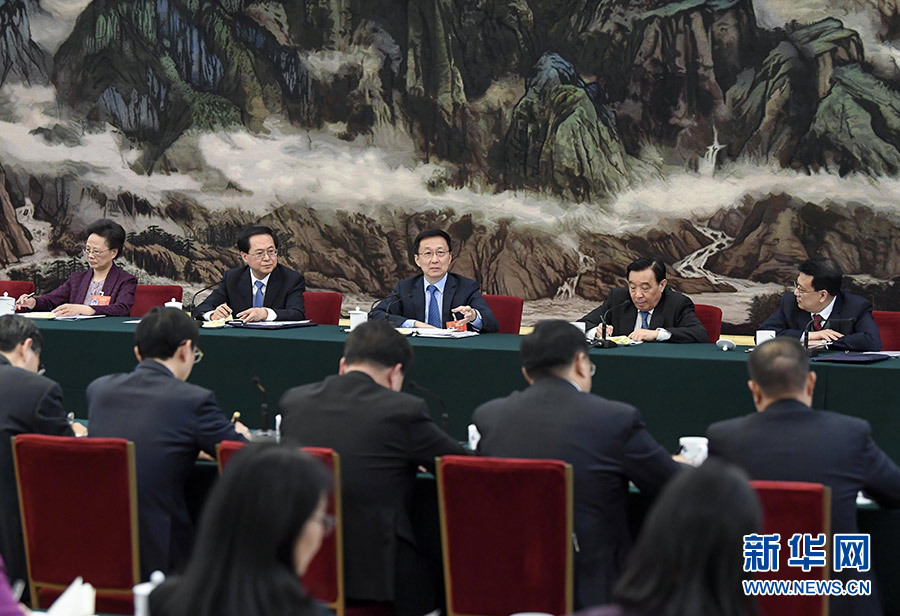 3月7日,中共中央政治局常委、國務(wù)院副總理韓正參加十三屆全國人大二次會議浙江代表團的審議。 新華社記者 高潔 攝