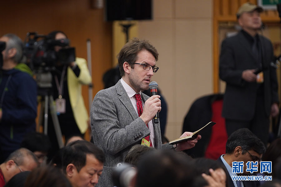????十三屆全國(guó)人大二次會(huì)議新聞中心3月7日9時(shí)在梅地亞中心新聞發(fā)布廳舉行記者會(huì),邀請(qǐng)財(cái)政部部長(zhǎng)劉昆,副部長(zhǎng)程麗華、劉偉就“財(cái)稅改革和財(cái)政工作”相關(guān)問(wèn)題回答中外記者提問(wèn)。圖為彭博新聞社記者提問(wèn)。新華網(wǎng)/中國(guó)政府網(wǎng) 劉廈 攝
