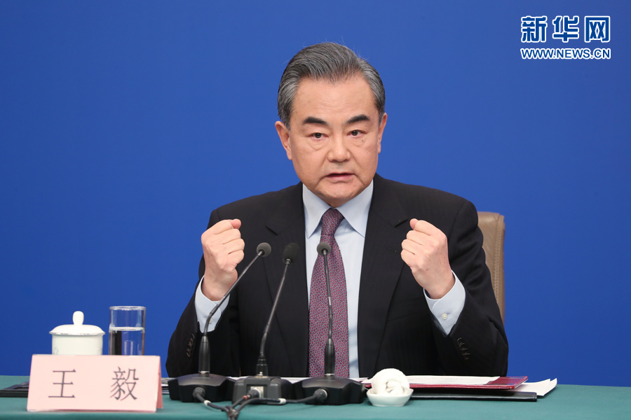 十三屆全國人大二次會(huì)議新聞中心3月8日10時(shí)在梅地亞中心新聞發(fā)布廳舉行記者會(huì),邀請(qǐng)國務(wù)委員兼外交部長(zhǎng)王毅就“中國外交政策和對(duì)外關(guān)系”相關(guān)問題回答中外記者提問。圖為王毅回答記者提問。新華網(wǎng)/中國政府網(wǎng) 陳杰 攝