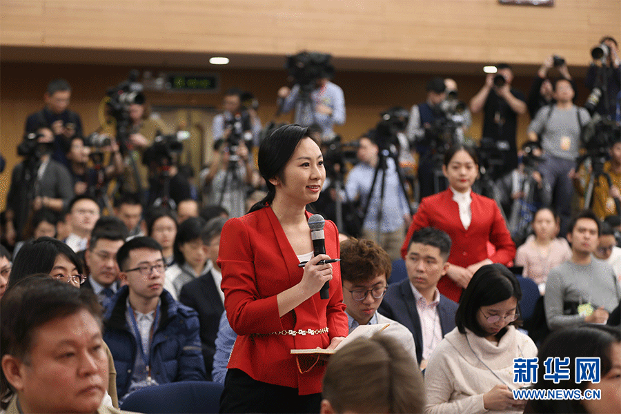 十三屆全國人大二次會議新聞中心3月9日(星期六)10時30分在梅地亞中心新聞發(fā)布廳舉行記者會,邀請商務(wù)部部長鐘山、副部長兼國際貿(mào)易談判副代表王受文、副部長錢克明就“促進(jìn)形成強大國內(nèi)市場 推動全方位對外開放”相關(guān)問題回答中外記者提問。圖為中國國際電視臺CGTN記者提問。新華網(wǎng)/中國政府網(wǎng) 劉廈?攝