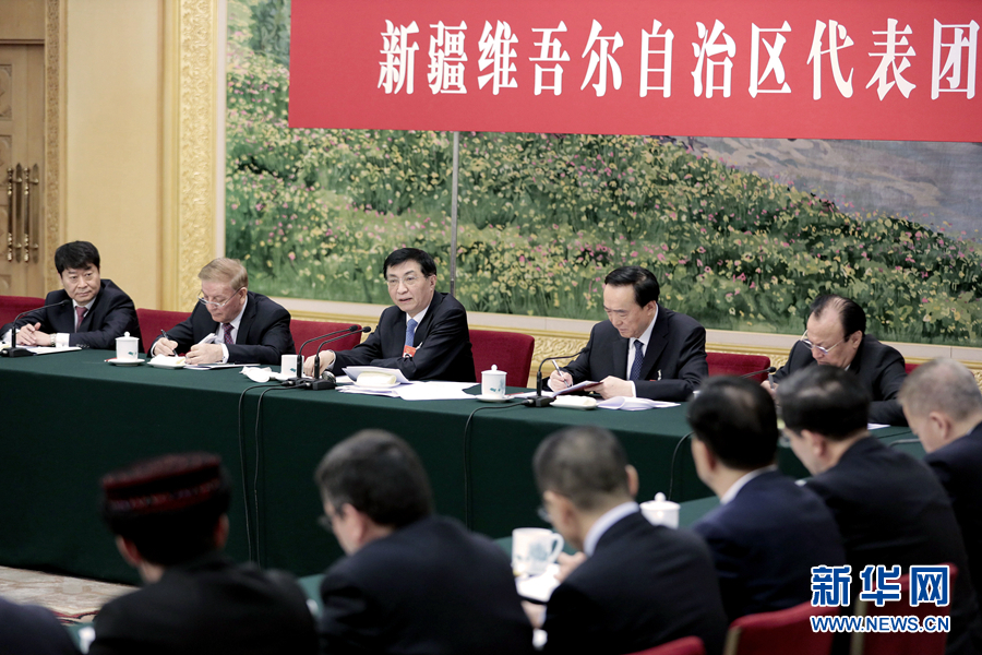 3月10日,中共中央政治局常委、中央書記處書記王滬寧參加十三屆全國人大二次會議新疆代表團(tuán)的審議。 新華社記者 劉彬 攝