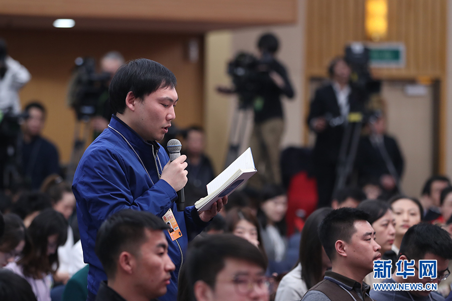 十三屆全國人大二次會議新聞中心3月11日(星期一)10時30分在梅地亞中心新聞發(fā)布廳舉行記者會,邀請國家市場監(jiān)督管理總局局長張茅、國家藥品監(jiān)督管理局局長焦紅、國家知識產(chǎn)權局局長申長雨就“加強市場監(jiān)管 維護市場秩序”相關問題回答中外記者提問。圖為經(jīng)濟日報融媒體中國經(jīng)濟網(wǎng)記者提問。新華網(wǎng)/中國政府網(wǎng)?劉廈 攝?