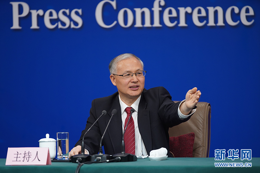 十三屆全國人大二次會議新聞中心于3月11日(星期一)15時在梅地亞中心新聞發(fā)布廳舉行記者會,邀請生態(tài)環(huán)境部部長李干杰就“打好污染防治攻堅戰(zhàn)”相關問題回答中外記者提問。圖為記者會主持人。新華網(wǎng)/中國政府網(wǎng) 劉廈 攝