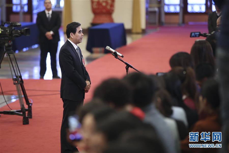 3月12日,十三屆全國(guó)人大二次會(huì)議在北京人民大會(huì)堂舉行第三次全體會(huì)議。這是人力資源和社會(huì)保障部部長(zhǎng)張紀(jì)南在“部長(zhǎng)通道”接受采訪。 新華社記者 金立旺 攝