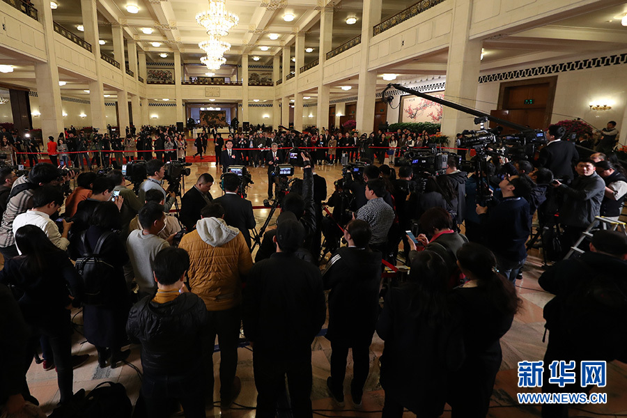 全國政協(xié)十三屆二次會(huì)議3月13日上午9:30在人民大會(huì)堂舉行閉幕會(huì)。圖為全國政協(xié)委員在“委員通道”接受采訪。新華網(wǎng)/中國政府網(wǎng) 陳杰 攝