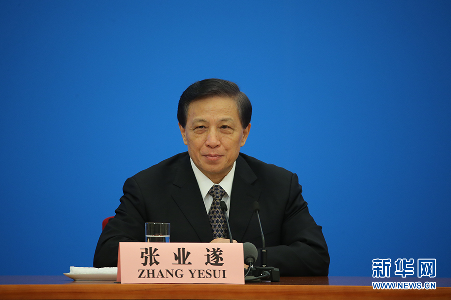 3月15日上午十三屆全國(guó)人大二次會(huì)議閉幕后,國(guó)務(wù)院總理李克強(qiáng)在人民大會(huì)堂三樓金色大廳會(huì)見(jiàn)采訪(fǎng)十三屆全國(guó)人大二次會(huì)議的中外記者并回答記者提出的問(wèn)題。圖為大會(huì)發(fā)言人張業(yè)遂。新華網(wǎng)/中國(guó)政府網(wǎng) 劉廈 攝?