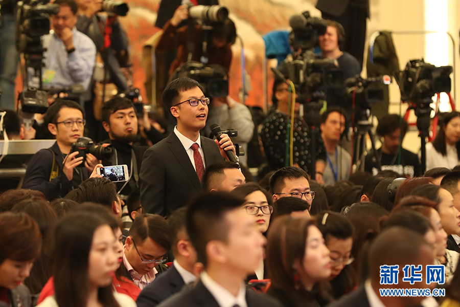 3月15日上午十三屆全國人大二次會議閉幕后,國務(wù)院總理李克強(qiáng)在人民大會堂三樓金色大廳會見采訪十三屆全國人大二次會議的中外記者并回答記者提出的問題。圖為新華社記者提問。新華網(wǎng)/中國政府網(wǎng)?陳杰 攝