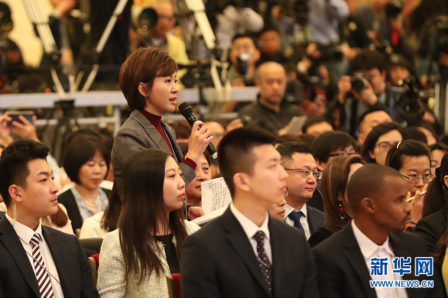 3月15日上午十三屆全國人大二次會議閉幕后,國務院總理李克強在人民大會堂三樓金色大廳會見采訪十三屆全國人大二次會議的中外記者并回答記者提出的問題。圖為中國廣播電視總臺記者提問。新華網(wǎng)/中國政府網(wǎng)?陳杰 攝