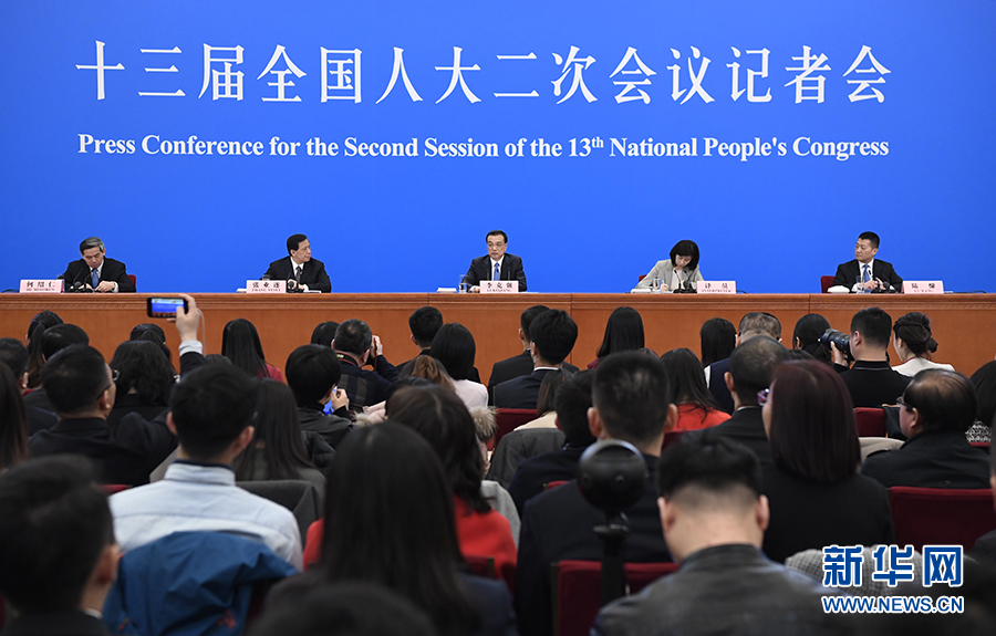 3月15日,十三屆全國(guó)人大二次會(huì)議在北京人民大會(huì)堂舉行記者會(huì),國(guó)務(wù)院總理李克強(qiáng)應(yīng)大會(huì)發(fā)言人張業(yè)遂的邀請(qǐng)會(huì)見(jiàn)中外記者,并回答記者提問(wèn)。 新華社記者 丁海濤 攝