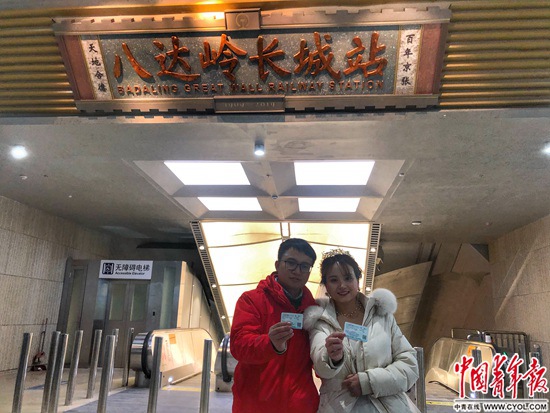 最后檢查完八達嶺長城站的防撞條、電梯等細(xì)節(jié)后,手機屏幕的時鐘跳到了深夜1點,32歲的胡維急忙趕回不遠(yuǎn)處的員工宿舍。那里,妻子肖雅萍正在屋里試婚紗。
